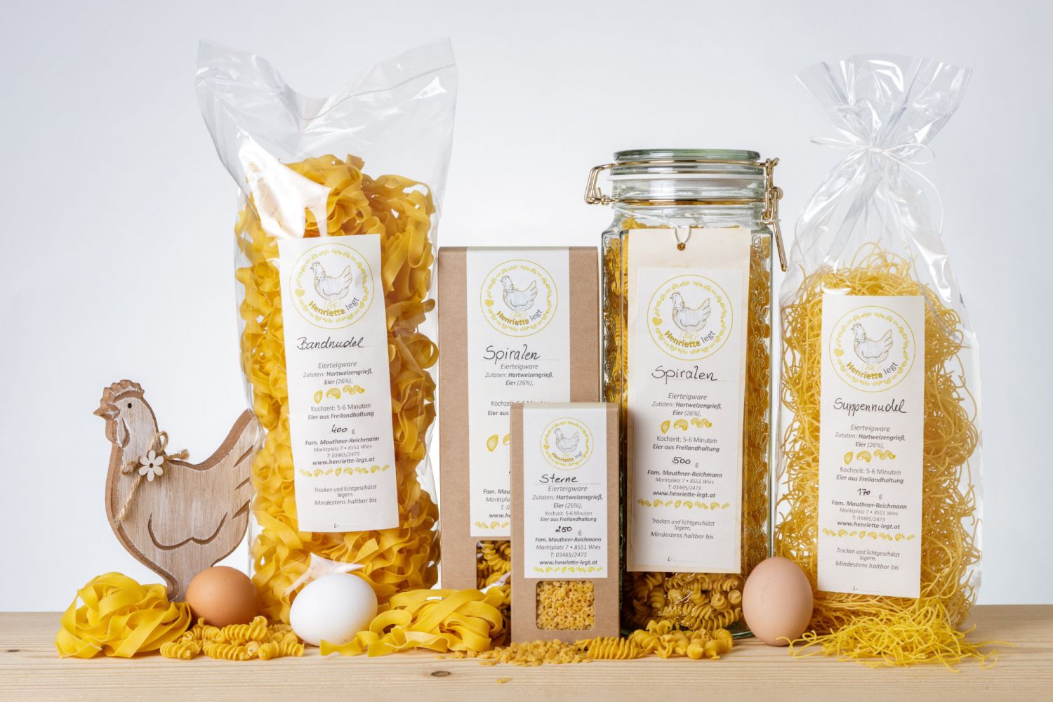 Henriette ist die Chefin im Hühnerstall und gemeinsam mit ihren vielen Damen nicht nur fürs Frühstückei zuständig sondern sie liefern auch die Eier für unsere vielfach prämierten Nudeln aus eigener Manufaktur.